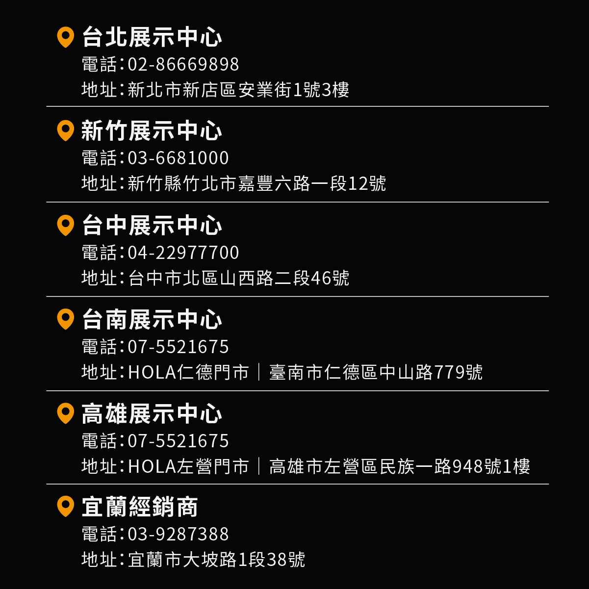 將近60種顏色,以及全台6大展示中心中